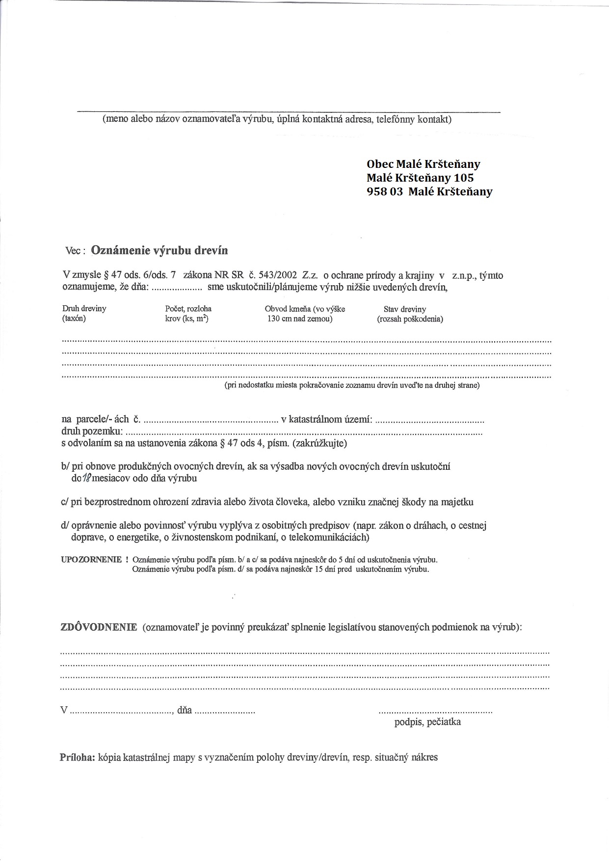 Tlačivo na oznámenie výrubu stromu